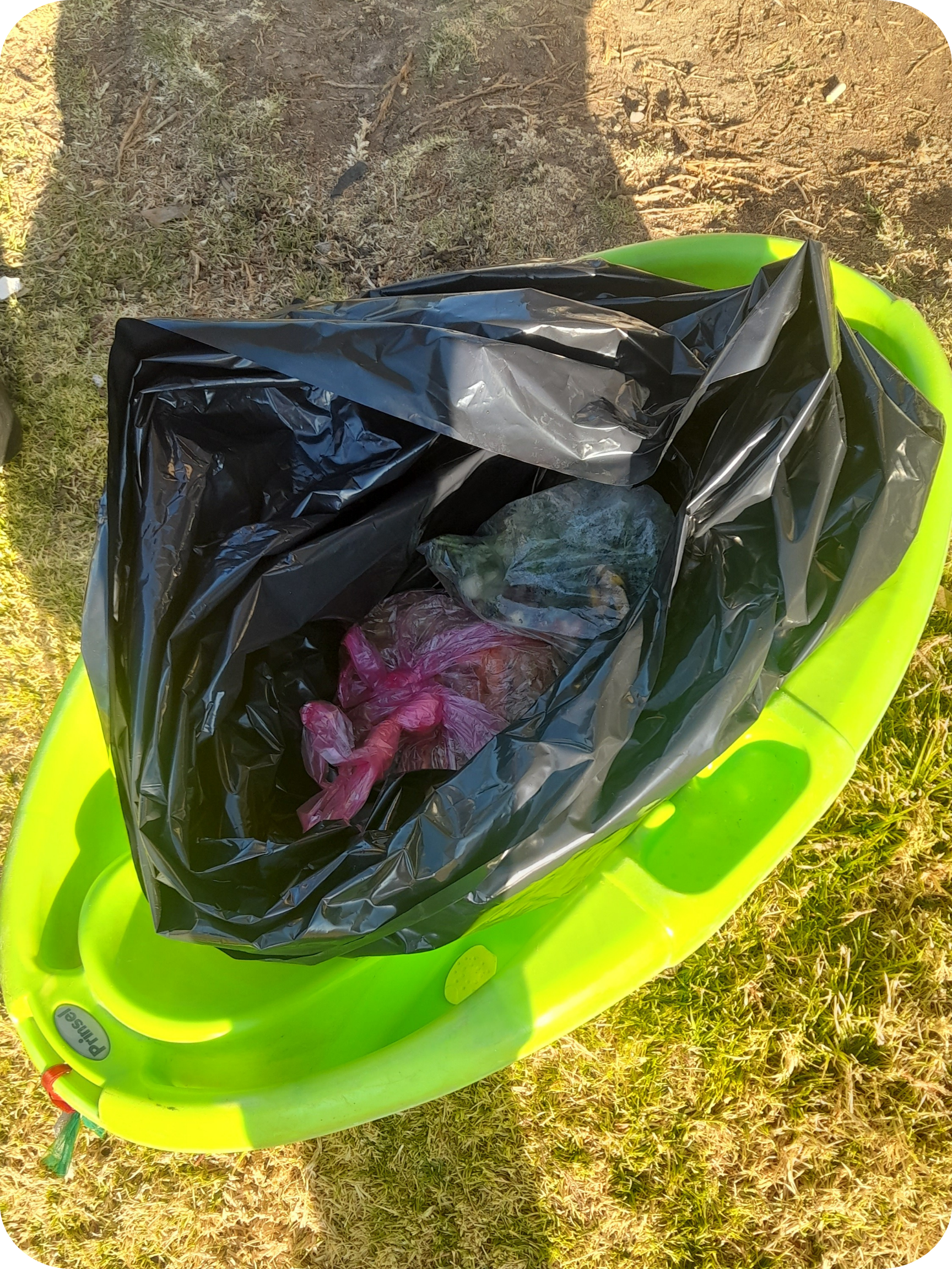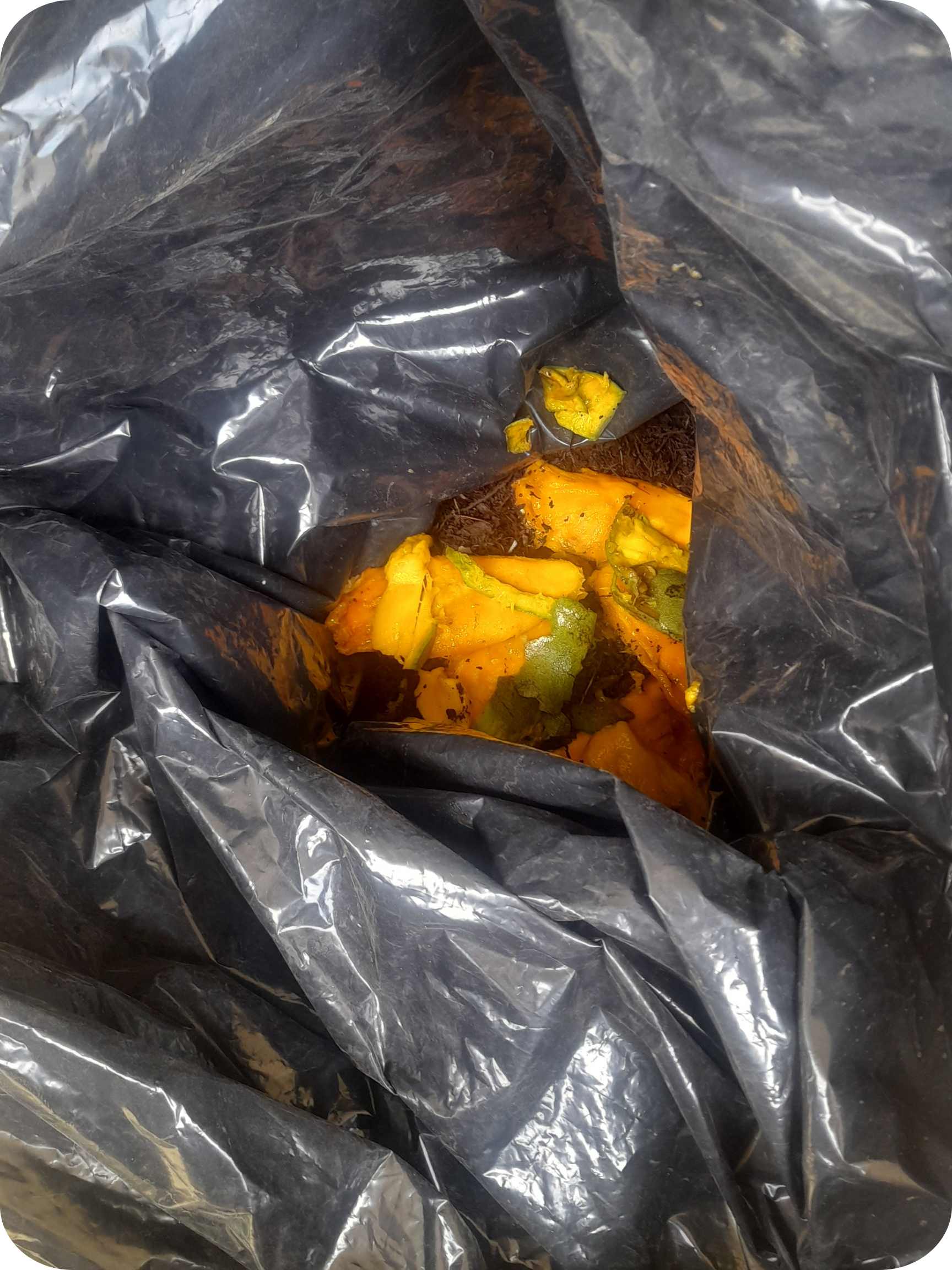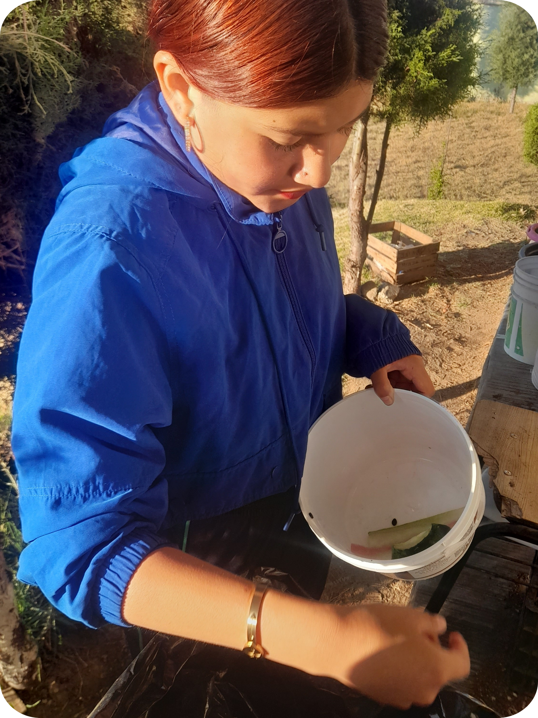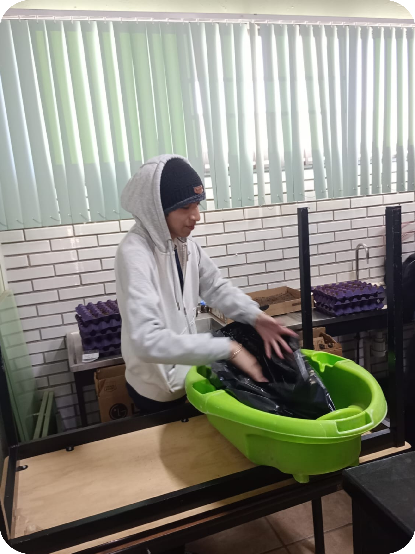 Se buscan los materiales, en nuestro caso solo fue un recipiente, bolsa negra, tierra, desperdicio y las lombrices californianas.